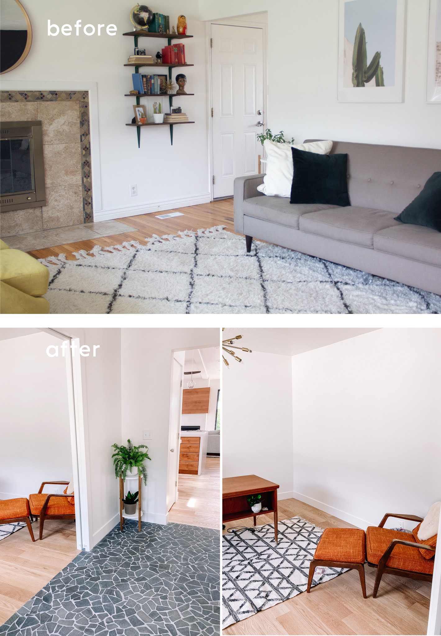 This entry tile is one of my favorite features of the house. It's common to see larger flagstone like tiles like this in MCM homes, this is a smaller scale tile but I fell in love with it when I found it.